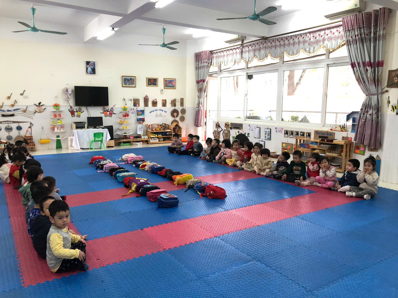 Trẻ cất balo đúng tủ của mình