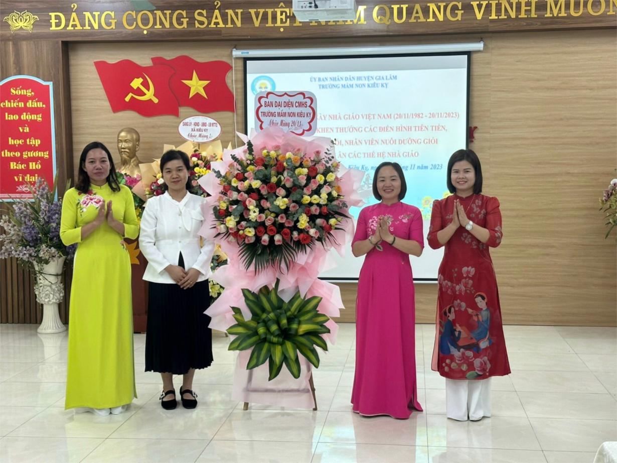 Bởi vậy hàng năm cứ đến gần ngày này trên khắp các trường học của cả nước lại dấy lên phong trào thi đua “dạy tốt học tốt” chào mừng “Ngày nhà giáo việt Nam”. Hoà chung với khí thế tưng bừng, phấn khởi của ngành giáo dục cả nước kỉ niệm 41 năm ngày nhà giáo Việt Nam (20/11/1982 – 20/11/2023). Thực hiện kế hoạch năm học và được sự đồng ý của cấp ủy, Đảng ủy, BGH. Chiều ngày 16/11/2023 Trường MN Kiêu Kỵ long trọng tổ chức lễ kỉ niệm 41 năm ngày nhà giáo Việt Nam.