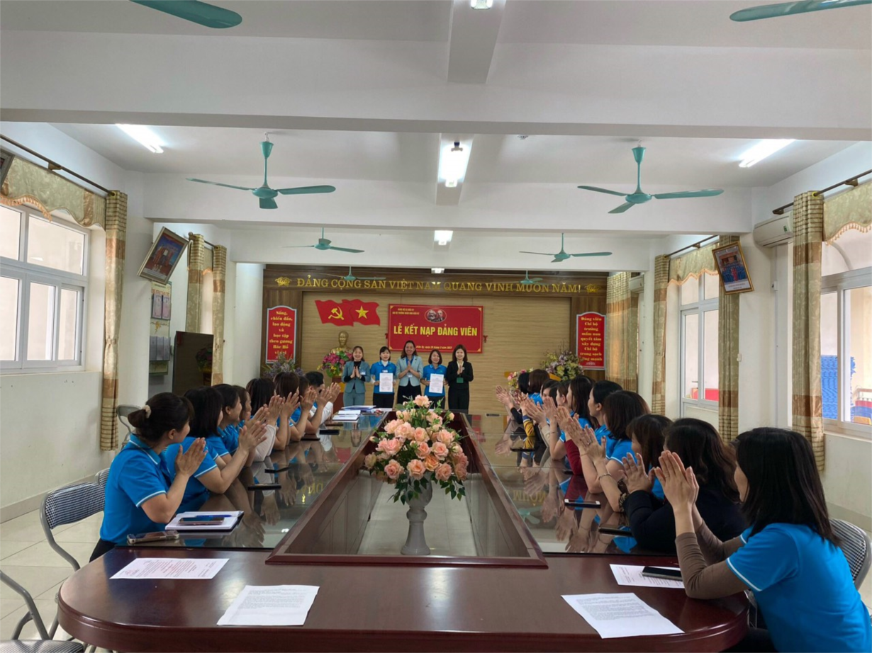 Thực hiện nhiệm vụ năm học 2022- 2023; thực hiện nhiệm vụ chính trị của Chi bộ, hôm nay ngày 28/3/2023, Chi bộ trường MN Kiêu Kỵ long trọng tổ chức "Lễ kết nạp đảng viên" cho 2 quần chúng ưu tú được đứng trong hàng ngũ của Đảng.