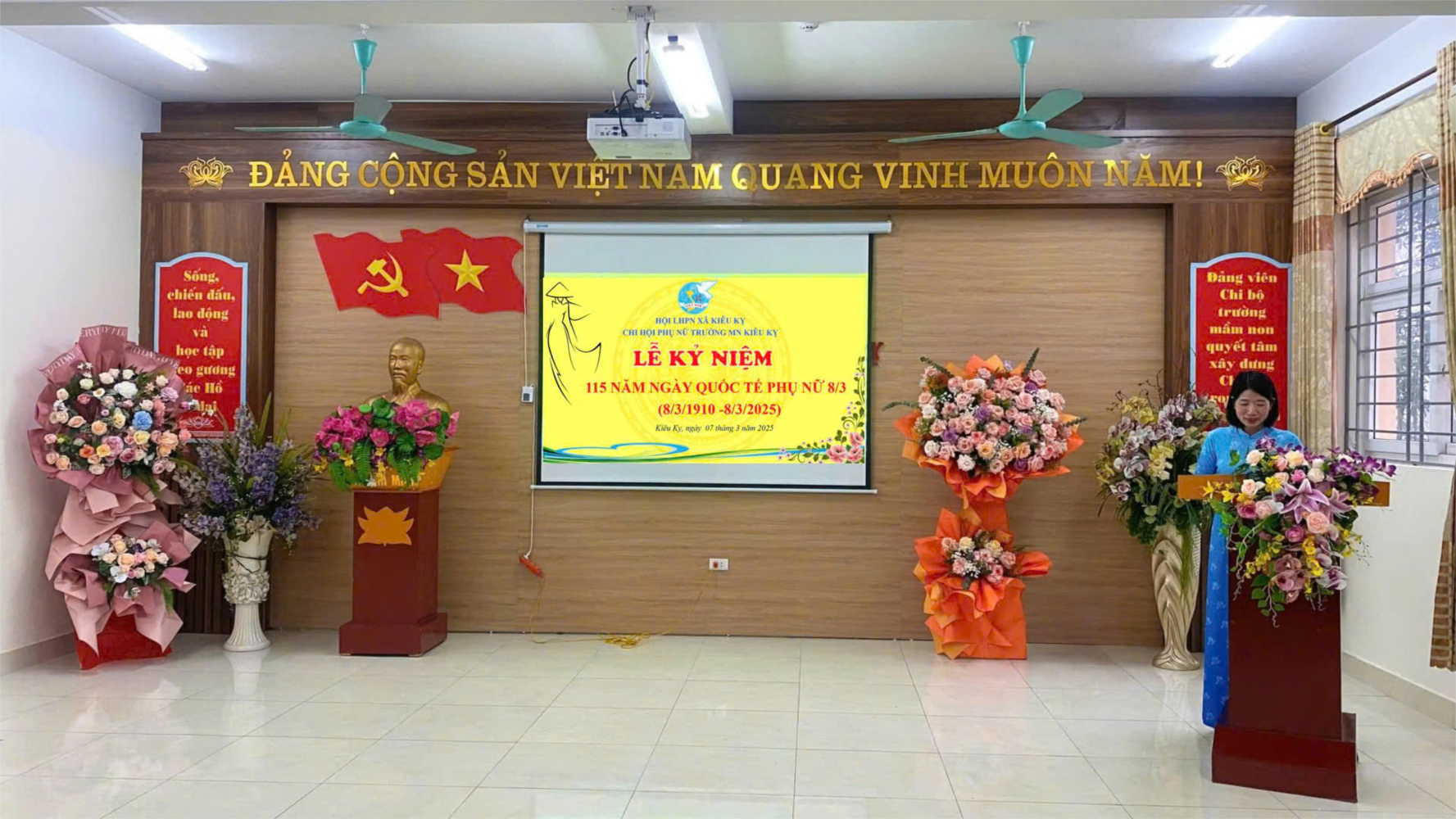 Mỗi độ tháng 3 về, mọi người lại náo nức đón chào ngày Quốc tế Phụ nữ 8/3. Đây là dịp để tôn vinh “một nửa thế giới” - những người phụ nữ "Giỏi việc nước - Đảm việc nhà". Hoà chung không khí ấy, Chi hội Phụ nữ Trường Mầm non Kiêu Kỵ long trọng tổ chức buổi lễ kỉ niệm 115 năm Ngày Quốc tế Phụ nữ 8/3 như món quà thân thương gửi tới các cô giáo.