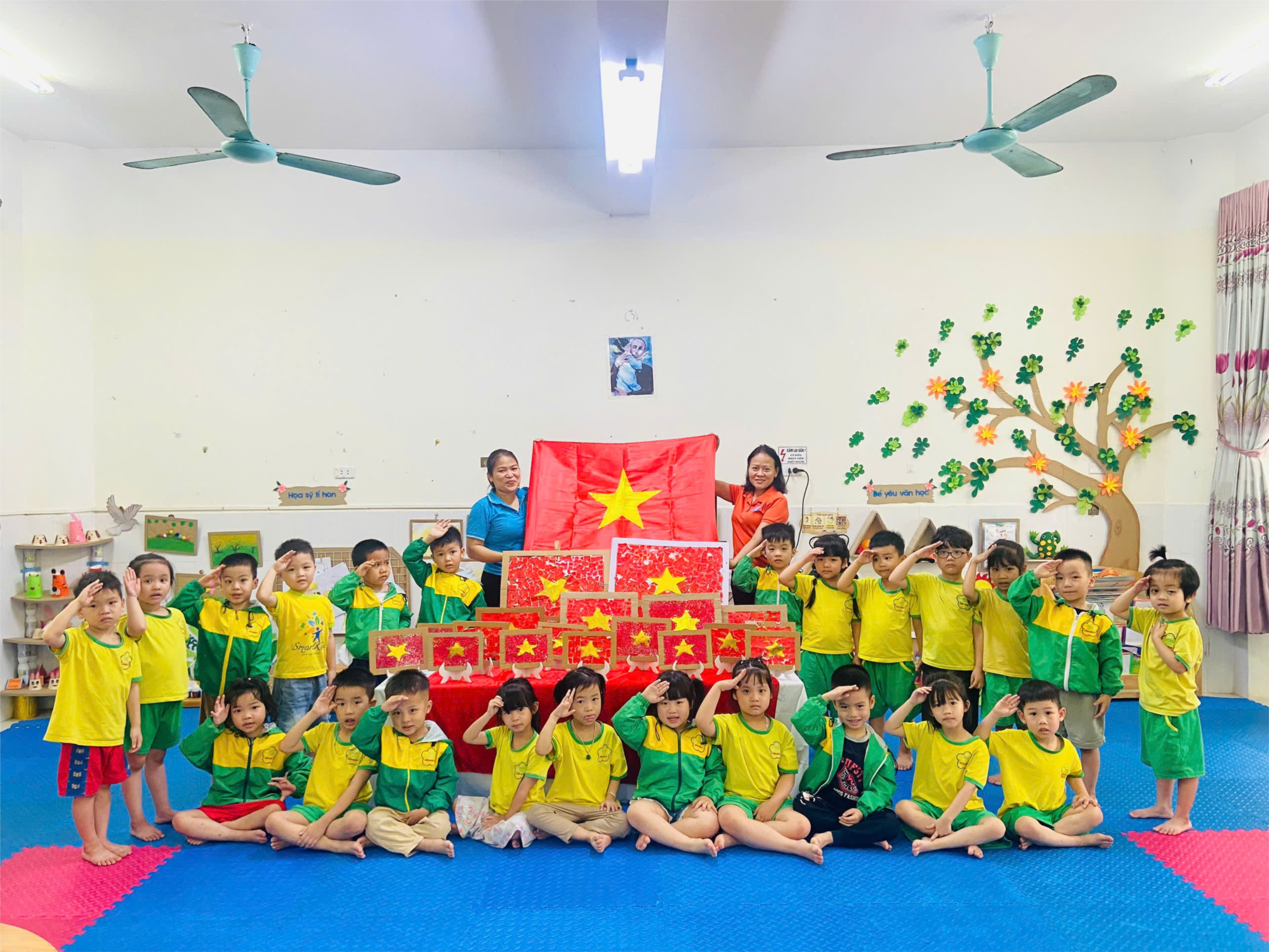 🖼️ Các bé cùng nhau tạo hình lá cờ Tổ quốc bằng những mảnh giấy nhỏ xinh, rèn luyện sự khéo léo và khả năng phối hợp tay – mắt. Trẻ được tham gia trưng bày sản phẩm và cùng nhau quan sát, nhận xét sản phẩm của mình và của bạn 👀🤝.
