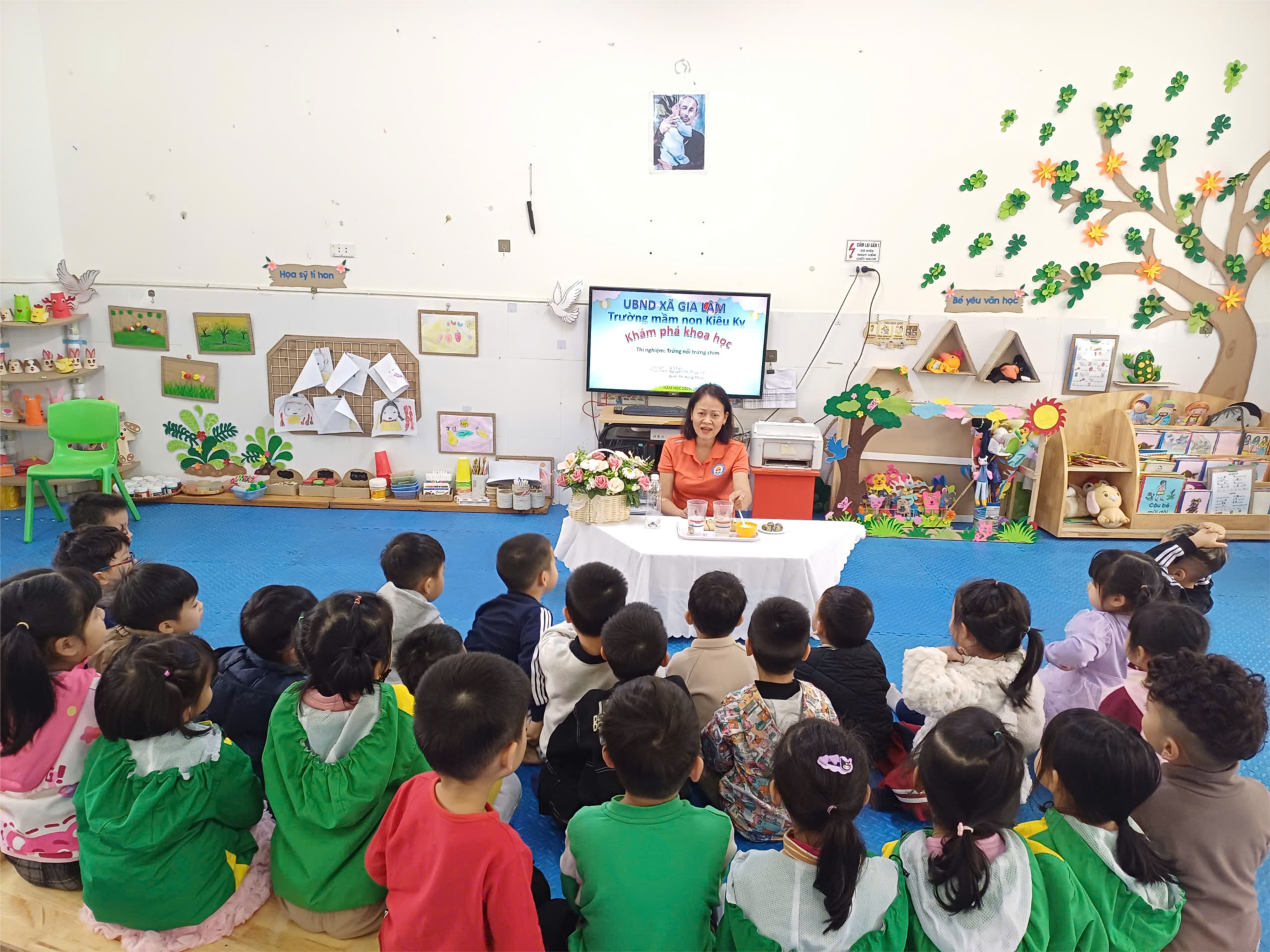 Hoạt động diễn ra trong không khí hào hứng, các bé tích cực đặt câu hỏi và đưa ra nhiều dự đoán thú vị. Đây là một trải nghiệm học tập sinh động, giúp trẻ học bằng chơi – chơi mà học, góp phần phát triển tư duy khoa học ngay từ lứa tuổi mầm non. Những giờ học trải nghiệm như vậy luôn mang đến cho các bé niềm vui, sự tò mò và thêm yêu thích việc khám phá thế giới xung quanh.