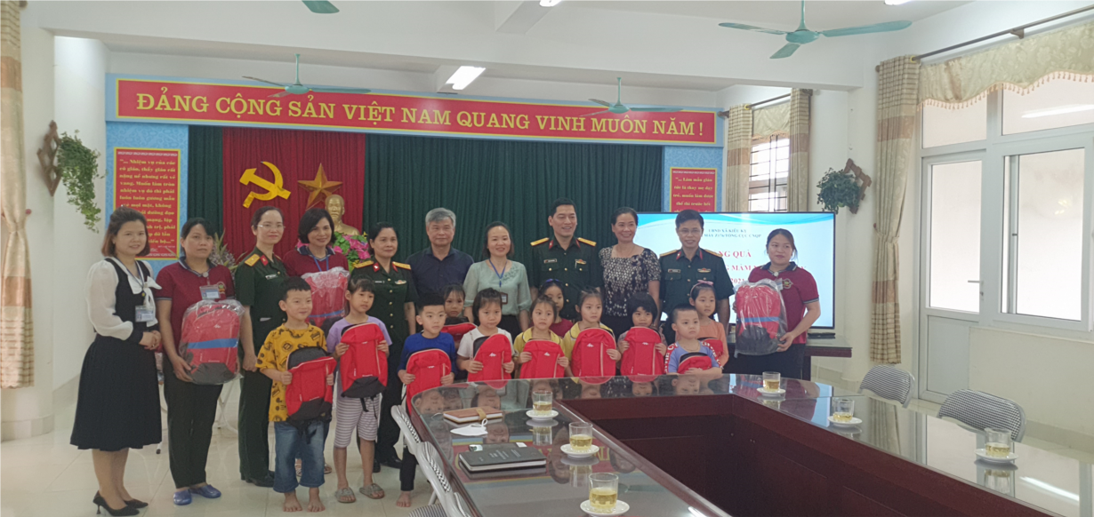 Để động viên tinh thần cho trẻ, ngày 21 tháng 4 năm 2022, nhà trường vinh dự được đón đoàn lãnh đạo tổng cục Z176 sang tặng quà cho 100% học sinh trong nhà trường, mỗi con được tặng 1 chiếc balo xinh xắn.
