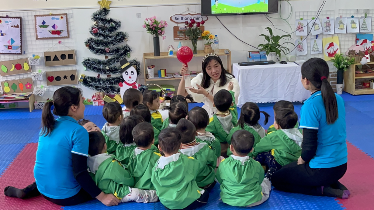 Trẻ và cô công chúa tuyết trò chuyện về giáng sinh, về những điều bí mật cô sắp gửi tới cho lớp.