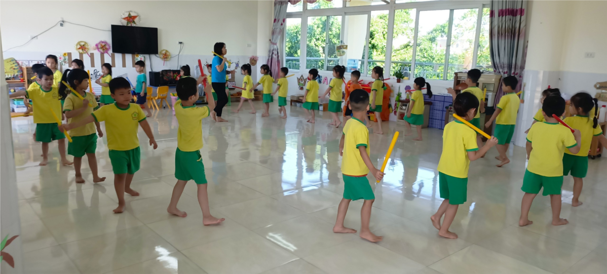 Dưới đây là một số hình ảnh trẻ tham gia hoạt động thể dục buổi sáng của trẻ: