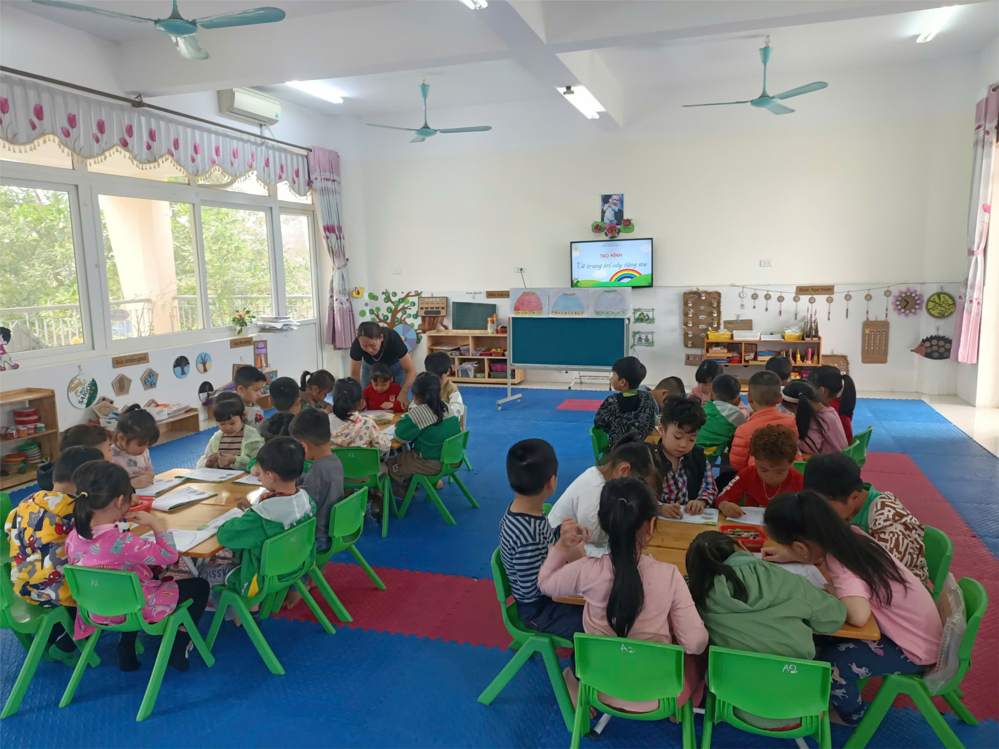 Dưới đây là 1 số hình ảnh trẻ lớp MGL A2 tham gia hoạt động tạo hình: Vẽ trang trí váy tặng mẹ.