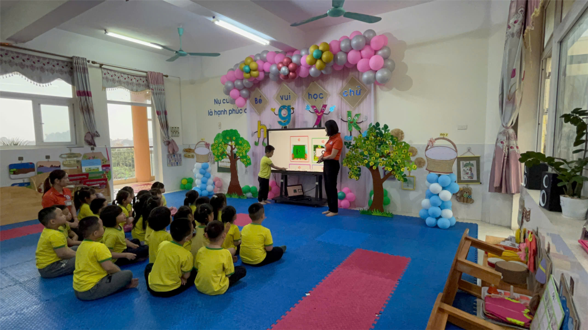 Những chiếc Ipad, màn hình cảm ứng sống động, phần mềm học chữ có giọng nói dễ thương – tất cả đã mang đến cho các bé một "sân chơi chữ cái" đầy thú vị.. Các bé vừa học vừa chơi, vừa quan sát hình ảnh minh họa vừa phát âm và được phần mềm phản hồi ngay lập tức. Bé nào cũng hào hứng....