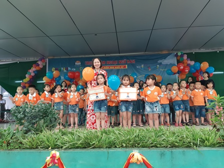 Về phía nhà trường có đ/c Đinh Thị Tố Doan – Bí thư Chi bộ, Hiệu trưởng nhà trường, các đ/c trong BGH, các đ/c giáo viên, đặc biệt là sự có mặt của 50 thí sinh khối MG lớn đại diện cho những học sinh tham gia lớp tiếng Anh cùng 100% trẻ khối MG trường mầm non Kiêu Kỵ.