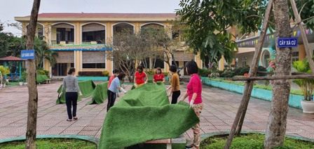 100% CBGVNV trong nhà trường nghiêm túc thực hiện công tác tổng vệ sinh môi trường.