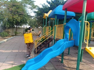 - Đã thực hiện phun thuốc khử khuẩn tại các khu thể chất, khu đồ chơi ngoài trời, các nhà vệ sinh của CBGVNV .