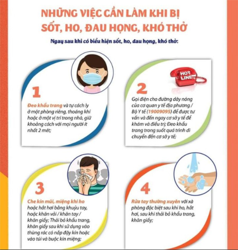 Ngay sau khi có biểu hiện sốt, ho, đau họng, khó thở: